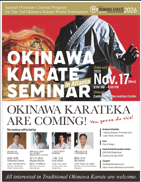 来年の8月2日に、沖縄で開催される第3回沖縄空手世界大会を宣伝するために、沖縄県が剛柔流の喜久川政成十段を団長とする4名からなる、海外キャラバンを米国に派遣しました。